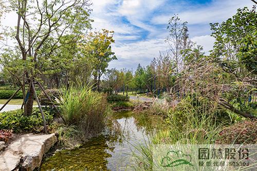 運河灣公園是一個以海綿城市理念打造的景觀公園,從旱溪、濕塘等形式豐富的海綿設(shè)施,到各類透水鋪裝材料的應(yīng)用,海綿城市理念貫穿于公園建設(shè)的各個環(huán)節(jié)。