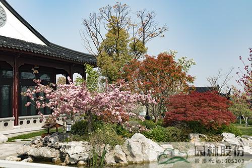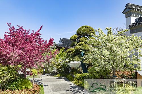 穿過迎賓入口,沿著曲折的園路前行,道路轉折處,一紫一白盛放的兩棵海棠,滿樹繁花,明艷動人,瞬間奪人眼球?!斑@是一個流動空間,穿過這兩棵海棠,往左轉,是海棠書院,院子前形成一個停留空間,可供游人在此駐足賞景。” 邊華鋒指著眼前的景觀介紹道,“往右轉,一棵枝繁葉茂的雞爪槭位于草坪中間,與周邊幾棵小規(guī)格的雞爪槭相互呼應,形成一個過渡空間,但這個空間和前面的空間大小、表現(xiàn)手法又各不相同?!?/p>