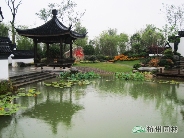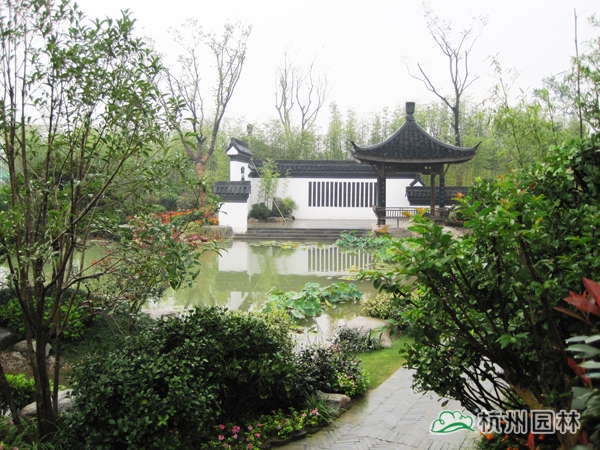 第二屆中國綠化博覽會之杭州園,又名“緣園”。以西湖美麗的傳說《白蛇傳》為設(shè)計(jì)脈絡(luò),將故事提煉成斷橋相逢、同心定緣、平湖秋月、雷峰夕照四個精華部分,融入到工程綠化作品中,運(yùn)用多桿叢生植物和木本花境為造景元素,平臺、小橋、埠頭、沙灘、景石,勾勒水鄉(xiāng)風(fēng)韻;粉墻、黛瓦、圓門、方亭、水榭,追憶江南情懷,由此達(dá)到了景中有情、情中有景,用園林綠化的丹青妙筆描繪出一幅情景交融的江南風(fēng)情畫卷。漫步緣園,仿佛回到千年前的西湖:風(fēng)景如畫、才子佳人、江南煙雨、風(fēng)光旖旎,斷橋之上,許仙與白娘子洋溢纏綿悱惻的浪漫愛情傳奇……