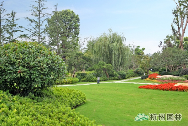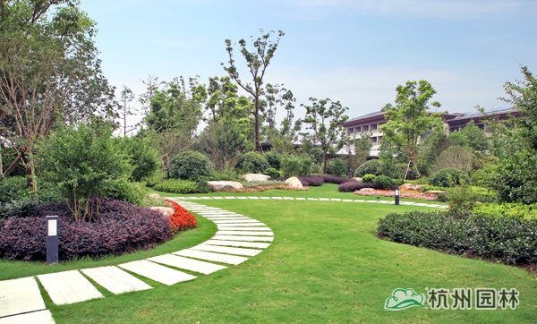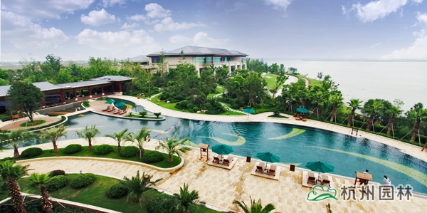 該工程位于江蘇吳江松陵鎮(zhèn)濱湖路三船河大橋附近,內容包括綠化種植、硬質鋪裝、園路施工、景觀小品工程、樁基工程、景觀照明系統(tǒng)等。在植物配置上,將中國園林的自然式手法與英國園林的自然式風格相結合,營造出亦古亦今、中西混搭,整體恢宏大氣、局部婉約精致的高端酒店景觀。該工程榮獲“2014年度中國優(yōu)秀園林綠化工程大金獎”。