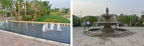 受中國(guó)傳統(tǒng)文化的影響,中國(guó)人喜歡靜觀或觀靜,現(xiàn)代小區(qū)水景設(shè)計(jì)一方面可以滿足人們對(duì)居住環(huán)境安靜舒適的需求,另一方面通過適宜小區(qū)環(huán)境尺度的噴泉、涌泉、疊泉等動(dòng)水,增加小區(qū)環(huán)境的生氣及靈動(dòng)性,給人們以感觀的刺激,用水的動(dòng)態(tài)之美與水聲之美讓身處鬧市之郊的居民體會(huì)“山水有清音”的意境與自然美景。