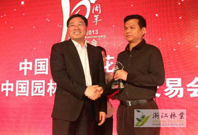 大會(huì)揭曉并頒發(fā)了“突出貢獻(xiàn)獎(jiǎng)”、“貢獻(xiàn)獎(jiǎng)”、“最佳合作伙伴獎(jiǎng)”、“2013年優(yōu)秀參展獎(jiǎng)”、“2013年產(chǎn)品金獎(jiǎng)”等多個(gè)獎(jiǎng)項(xiàng),以此表彰一批多年來(lái)為中國(guó)(蕭山)花木節(jié)的成功舉辦做出積極貢獻(xiàn)的個(gè)人和單位。其中,杭州市園林綠化工程有限公司榮獲“最佳合作伙伴獎(jiǎng)”、“2013年優(yōu)秀參展獎(jiǎng)”,參展的產(chǎn)品“紅寶石”紫薇和“火煉金丹”桂花榮獲“2013年優(yōu)秀產(chǎn)品獎(jiǎng)”,總經(jīng)理張炎良上臺(tái)領(lǐng)取了獎(jiǎng)牌。