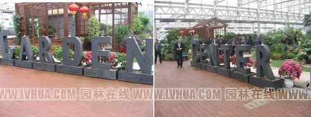 一進(jìn)入室內(nèi),首先映入眼簾的就是“GARDEN CENTER”(花園中心)幾個(gè)大字,仔細(xì)一看,上面還有流水青煙,十分吸引人的眼球。花園中心內(nèi)不僅展示了各式各樣的室內(nèi)植物、庭院植物,更有各種肥料、工具等園林資材展示。