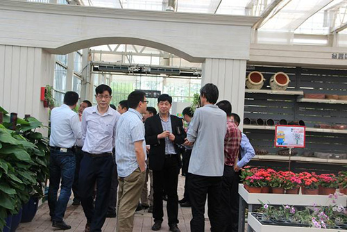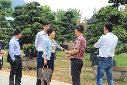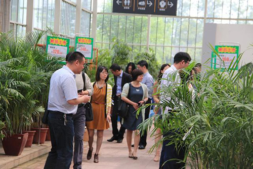 圖為企業(yè)家在考察參觀(guān)杭州園林畫(huà)境·青山湖花園中心