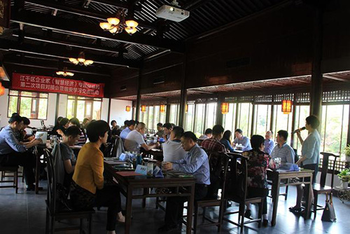 在畫(huà)境·青山湖花園一間中式木樓中,聚集著近30位江干區(qū)政府、發(fā)改局和各行各業(yè)的優(yōu)秀企業(yè)家。