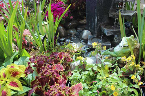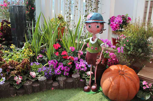 鵝卵石使溪水流淌更趨自然,美麗的鐵藝姑娘在花園中勞作。仔細看,旁邊還有青蛙王子樂隊的婉轉音樂。這些小細節(jié),增加了花境的趣味性。