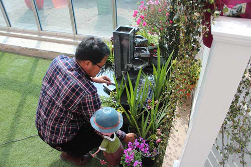 另外,陽臺、露臺、庭院景觀往往依墻體、欄桿而建,故可依托這些構筑物懸掛吊蘭、常春藤、扶芳藤等垂吊類植物,還可根據(jù)自己的喜好擺放多肉盆栽、組合盆栽,甚至是盆景等。