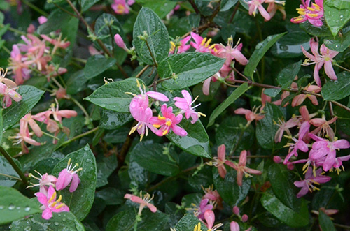 我是忍冬科忍冬屬植物,落葉灌木,新葉嫩綠,老葉墨綠色泛藍色,花粉紅色,花期4-5月,漿果亮紅色,果期9-10月。因其花色美麗,著花濃密,耐修剪,易于養(yǎng)護,可在混合花境中作為中后層次的植物材料使用。 看我這么秀美,還不帶我走!