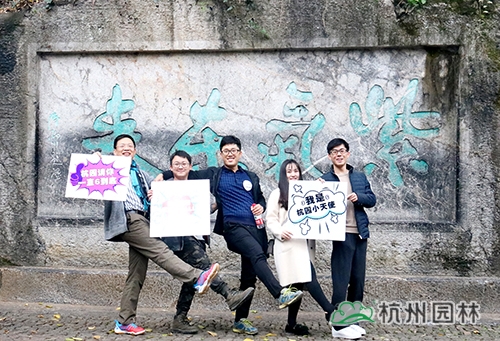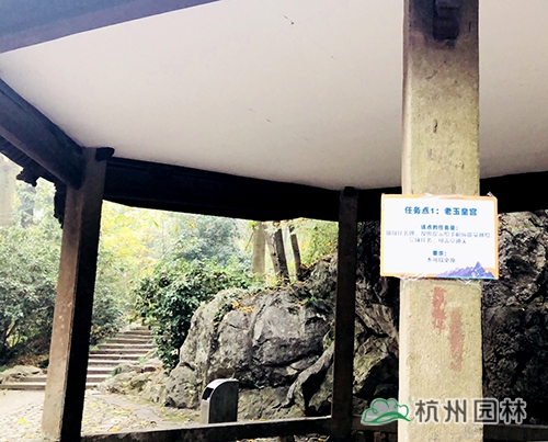 第二個任務(wù)點在紫氣東來石碑。大家在紫氣東來石碑前的平臺區(qū)域用“杭州園林”的元素進行合影、點贊,即可蓋章過關(guān)。紫氣東來石碑是玉皇山的標(biāo)志性位置,大家在這里合影留念,成為“杭園小天使”,“為杭園打call”,玩的不亦樂乎。