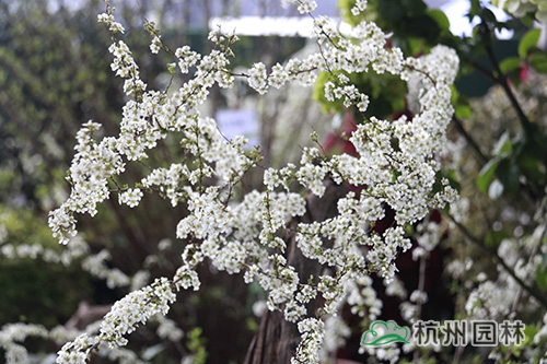 現(xiàn)場景觀表現(xiàn)最為搶眼的,當數(shù)噴雪花,長長的枝條上開滿了細密的小白花,花朵和珍珠般的花蕊綴在低垂或是翹起的細長枝條上,就像是噴泉噴涌而出,只不過這噴泉噴的不是水,而是“雪花”,遠遠望去一片雪白,甚是壯觀,好似雪花壓滿枝頭,在燦爛明媚的春光中,愈發(fā)顯得冰雪可愛,吸引了許多人的駐足觀看和拍照留影。
