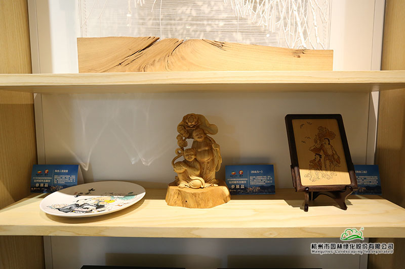 負(fù)一層展廳內(nèi),不僅循環(huán)播放著臺(tái)州城市形象、旅游景區(qū)、山海風(fēng)光、生態(tài)文明建設(shè)、“兩山”理論成果的宣傳片,還展示了臺(tái)州特色的茶葉、烏藥黃精、楊梅制品、無患子系列產(chǎn)品、木竹工藝品等特色林產(chǎn)品。