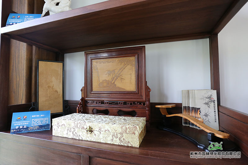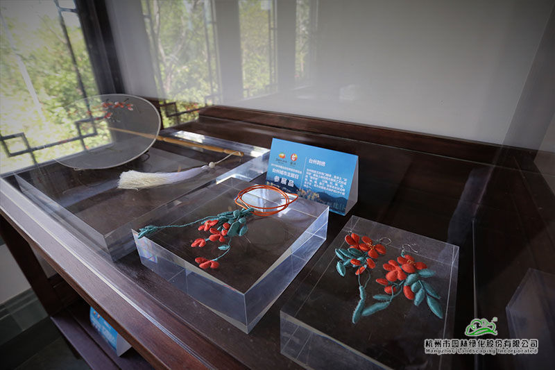 在以浙派民居為風(fēng)格的主題建筑“富春山居”內(nèi),展示著來自仙居的無骨花燈、溫嶺的石雕、黃巖的翻簧竹雕、椒江的臺(tái)州玻雕、臺(tái)州刺繡等精美的展品。