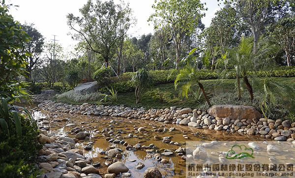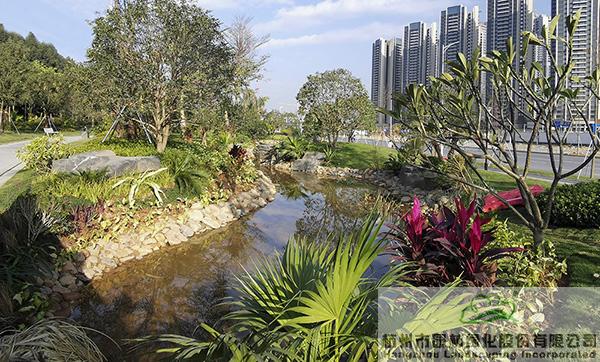 “項(xiàng)目將海綿城市理念融入公園建設(shè),園路鋪裝采用透水混凝土,下雨時(shí)雨水可快速滲透,路面不積水;旱溪景觀則在下雨時(shí)蓄水,雨水可用于植物的日常澆灌,干旱時(shí),鋪滿鵝卵石的水底又與周邊豐富的植物營造出另一種園林意境?!彪S著葉偉華的介紹,項(xiàng)目建設(shè)中許多隱藏的細(xì)節(jié)不斷展現(xiàn),生態(tài)造園的理念進(jìn)一步深入人心。