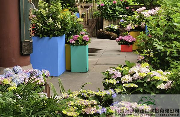 在城隍閣二樓平臺(tái),杭園股份贊助的50余個(gè)品種、近400余盆的繡球花也將驚艷亮相,通過(guò)豐富的造景方式,充分展現(xiàn)繡球花的魅力。不管是種植在色彩明艷的花箱中,還是與枯木、竹籬笆、瓦片等的搭配,繡球都展現(xiàn)出絕美的風(fēng)姿,吸引著人們探尋的目光,忍不住拿起相機(jī)或手機(jī),留下一個(gè)個(gè)精彩瞬間。其中,花大色艷、色彩可調(diào)的大花繡球‘搖擺樂(lè)’、‘藍(lán)寶石’,矮小可愛(ài),青澀潔白的圓錐繡球‘活力青檸’,花如寶塔、葉形如掌的重瓣櫟葉繡球‘雪花’等,是杭園股份今年主推的品種,表現(xiàn)都非常搶眼。