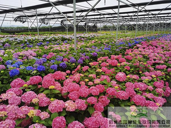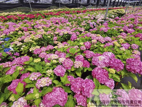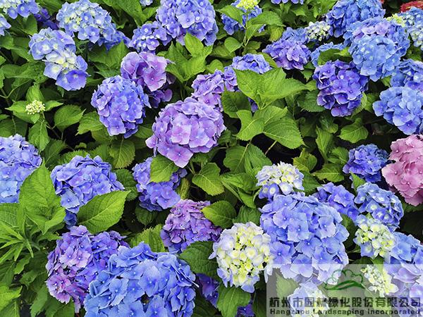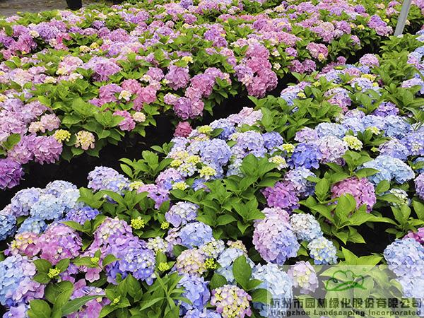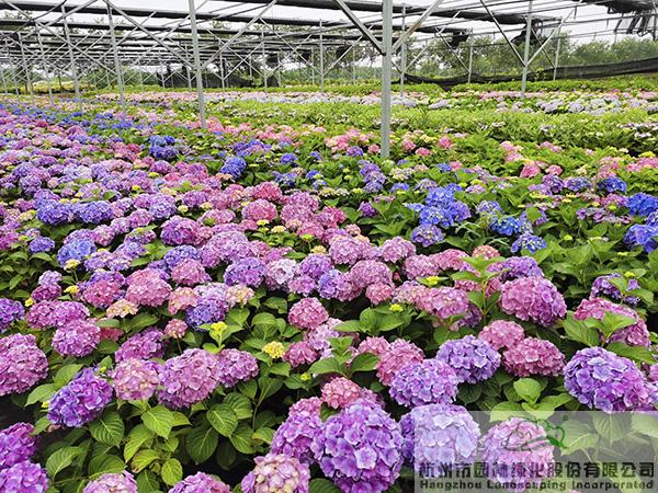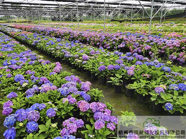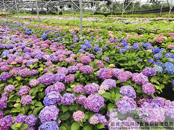 五、六月份,走進(jìn)杭州畫(huà)境種業(yè)有限公司徑山基地,依然是一片忙碌的景象,工人們正在忙著苗圃的管理,客戶們正在忙著看苗選苗。在滿眼的綠色中,獨(dú)有一片姹紫嫣紅瞬間吸引了人的目光。走近一看,原來(lái)是盛開(kāi)的繡球。琳瑯滿目的品種,繽紛絢麗的色彩,在夏日的陽(yáng)光下恣意綻放,開(kāi)出一片繁花似錦,開(kāi)出一場(chǎng)花海盛宴。話不多說(shuō),先看一波美圖吧。