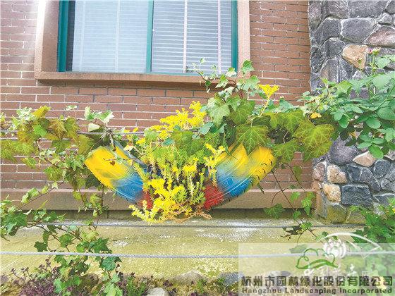 輪胎與佛甲草等植物搭配,營(yíng)造特色景墻。