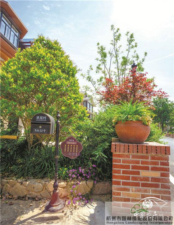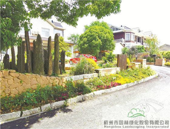 景墻邊的植物配置同樣有講究。利用銀杏、桂花、梅花、紅楓等植物營(yíng)造上層空間,這些植物具有遮擋作用,能夠?yàn)橥ピ籂I(yíng)造一定的私密空間。通過(guò)樹(shù)狀、球狀、攀援、傘狀、字母等各種形態(tài)的月季,金冠女貞球、龜甲冬青球、銀姬小蠟球、藍(lán)莓、八仙花、小葉梔子、翠蘆莉、花葉千鳥(niǎo)花、藍(lán)山鼠尾草、紫葉狼尾草等小喬灌木,在打造中層空間的同時(shí),和美女櫻、金娃娃萱草、花葉玉蟬花、花葉香桃木、紫菀、澤蘭、礬根、五彩絡(luò)石、石竹等下層空間植物一起裝飾和襯托景墻,使家家戶戶的景觀更加豐富多變。