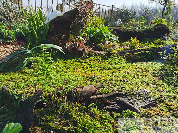 ②選用大灰蘚等適應(yīng)性極強的苔蘚植物種類作為蘚類濕地景觀本底植物材料,并在枯木上、局部小景觀中選用細葉小羽蘚等較耐旱的苔蘚植物種類,豐富蘚類濕地景觀。