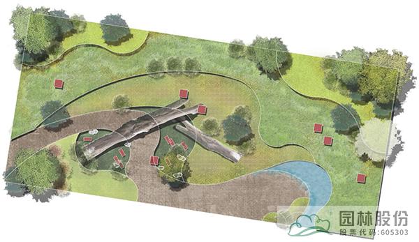 以枯木為主景,種植大灰蘚、細葉小羽蘚等蘚類植物,搭配枝條飄逸的河灘冬青,水波粼粼的淺水塘,打造生態(tài)且富有趣味的苔蘚濕地景觀,周邊小范圍種植花灌木及宿根花卉,增添色彩。