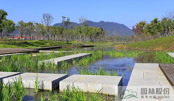 項(xiàng)目還充分利用滸溪及靈峰湖沿線的湖灣和眾多洼地,引水入園,打造雨水花園、下沉式綠地等,通過(guò)豐富的植物配置與景觀小品,形成沿湖而生的各個(gè)景點(diǎn),并設(shè)置各色景觀橋連通內(nèi)塘與外湖的生態(tài)通道,將周邊景點(diǎn)有機(jī)串連?;据谵ň吧鳟?,湖光山色相映成趣,整個(gè)滸溪沿線形成一個(gè)可循環(huán)的生態(tài)系統(tǒng),有效改善和美化了周邊環(huán)境,展現(xiàn)可持續(xù)發(fā)展的造園理念。