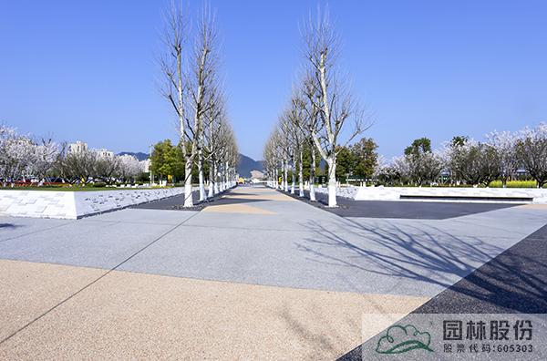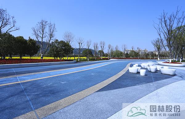 從各個(gè)廣場(chǎng)到沿溪綠道,全部采用透水混凝土材料,并在兼顧排水功能的同時(shí),通過(guò)色彩、圖案的變化,營(yíng)造移步換景的濱水景觀。廣場(chǎng)鋪裝主要選用深灰、淺灰、土黃等色彩的透水混凝土材料,根據(jù)現(xiàn)場(chǎng)景觀配色需求,設(shè)計(jì)不同的鋪裝組合,營(yíng)造大氣自然、豐富多變的廣場(chǎng)景觀。靈溪公園入口處的波紋廣場(chǎng),則以藍(lán)色透水混凝土材料為主,搭配亮麗的黃色,營(yíng)造出流暢自然、色彩明亮的波紋效果,充滿了流動(dòng)的旋律,再加上極富特色的異形樹(shù)池、坐凳,整個(gè)廣場(chǎng)又呈現(xiàn)出時(shí)尚的現(xiàn)代風(fēng)情,帶給人們更加豐富的濱水景觀體驗(yàn)。