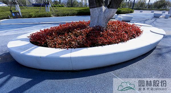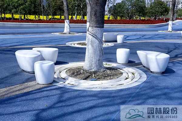 造型豐富美觀的泰科石坐凳和樹(shù)池是項(xiàng)目中的一大亮點(diǎn)。在波紋廣場(chǎng)和兒童樂(lè)園等地方,采用高強(qiáng)度復(fù)合無(wú)機(jī)泰科石材料,造型為圓形、橢圓形、異形的各種坐凳和樹(shù)池,錯(cuò)落有致地分布,潔白的顏色與彩色的混凝土鋪裝相映成趣,既可以作為行人休憩的地方,又成為景觀的一部分。這些坐凳和樹(shù)池均以模具工藝成形,造型美觀,集現(xiàn)代休閑與實(shí)用功能于一體,表面光滑平整,自潔性好,抗污染強(qiáng),維護(hù)簡(jiǎn)單,只需擦拭后水管沖洗即可。