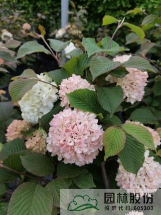 忍冬科莢蒾屬,落葉灌木,國內(nèi)從日本引進(jìn),株高可達(dá)2.5-3m。新葉成暗紅色,后期會慢慢褪去,呈綠色。整個花序都是不育花,球形,花苞粉綠色,開放后淡粉色,最后變成白色?;ㄆ?月初到5月初。秋天的樹葉顏色多變,像油畫調(diào)色板一樣絢麗多彩。它適應(yīng)我國大部份地區(qū)種植,病蟲害較少。冬季至早春可修剪。一年施肥3次,早春萌芽前,花后及秋季。適合園藝盆栽或庭院觀賞。