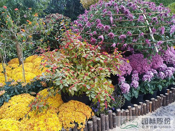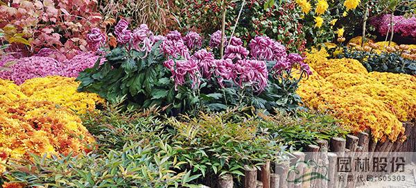本次花境景觀中的主體雖是菊花,如球菊、蟹爪菊、乒乓菊、芙蓉菊等,但點(diǎn)綴其中的植物優(yōu)良品種,使得整體花境更具獨(dú)特魅力。