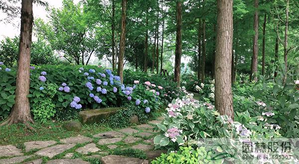 繡球園從原有的水杉林下覆蓋至整個北園。