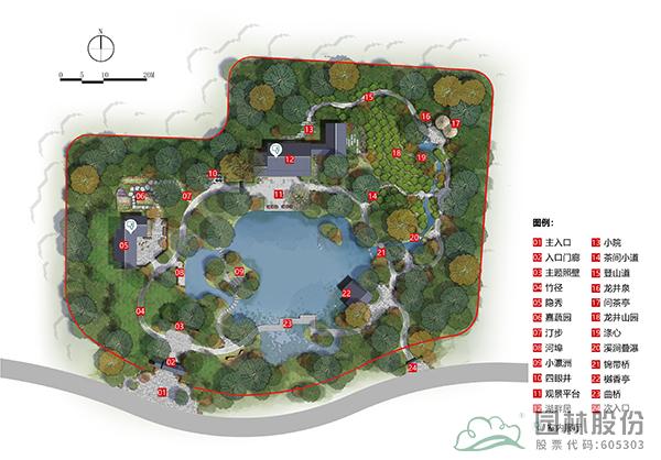 借助場(chǎng)地高差順勢(shì)而為,掇山理水,合理布局,形成了獨(dú)特的“一山、一溪、一湖、一島”的自然山水骨架和“二亭、二橋、二樓(民居)、三門(mén)”的建筑格局,通過(guò)景序布置、空間轉(zhuǎn)換劃分出五大展區(qū),既符自然之理,又富美感之趣。民居農(nóng)田、茶園竹林、鄉(xiāng)風(fēng)民情在這里融為一體,通過(guò)藏、透、回、借、寓等造園手法,從有限到無(wú)限,共同組成了天人合一的錢(qián)塘人家。