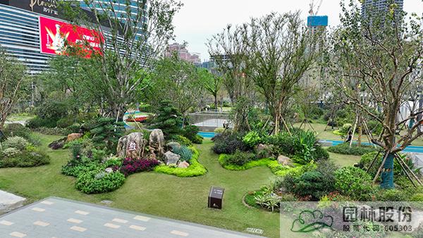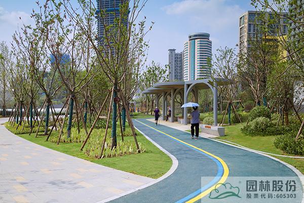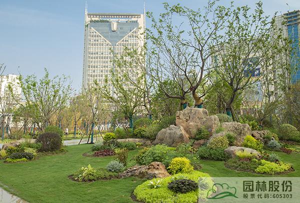 項(xiàng)目注重新優(yōu)植物的應(yīng)用,行道樹采用娜塔莉、中心廣場通道兩側(cè)綠地種植美國紅楓、中心廣場內(nèi)種植銀杏樹等色葉樹種。翠綠的枝葉相互掩映,樹下設(shè)有林蔭座凳,夏季可有“大樹成蔭”之景,市民可觀賞可乘涼,充分感受自然野趣。主道路行道樹為染井吉野等開花與色葉樹種,周邊綠地采用混合花境置石結(jié)合的配置手法,時(shí)花、低矮花灌木與景石自然搭配,并大量應(yīng)用了公司自主研發(fā)的繡球新品種,營造景觀豐富的長效花境景觀。