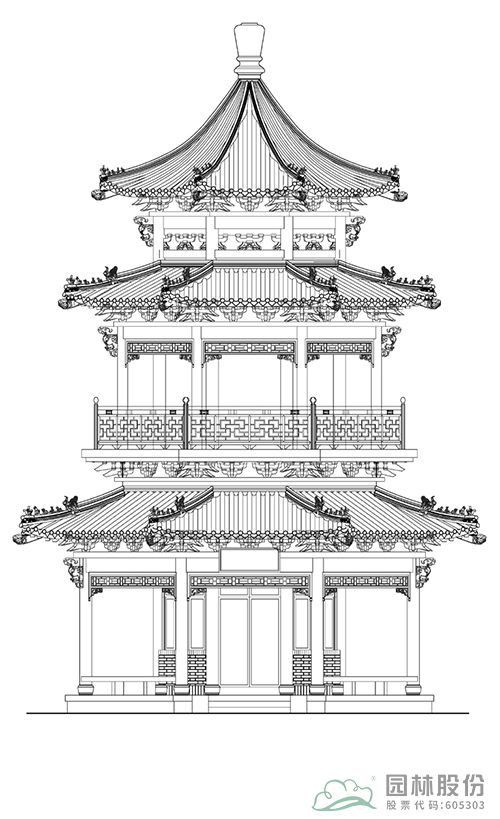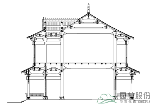 3.尺度比例:依據(jù)明清工程做法確定主體構架、屋頂結構、維護結構、臺基地面和裝飾構件五部分的樣式、比例、材料選擇等,使建筑與周圍的景觀相協(xié)調。