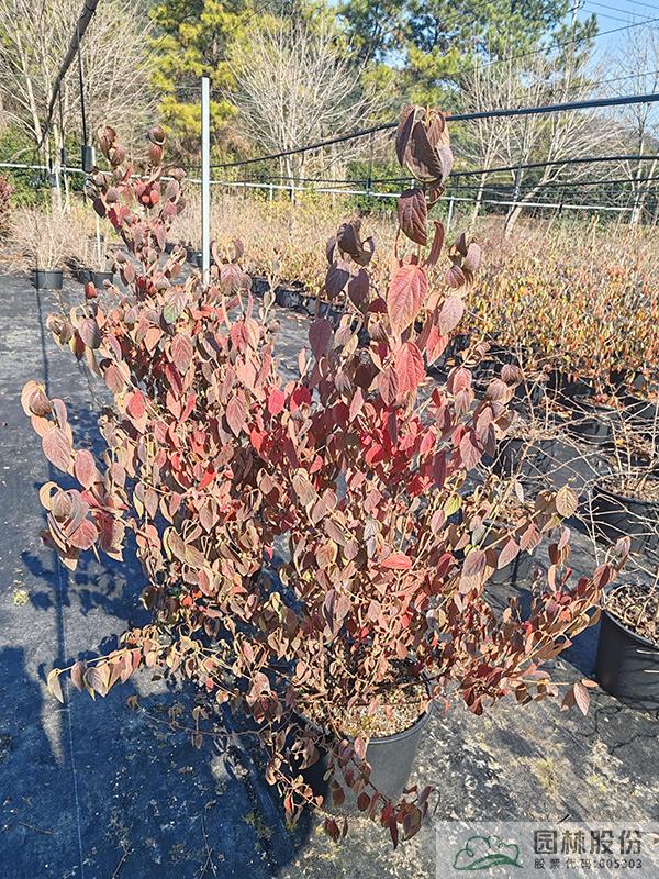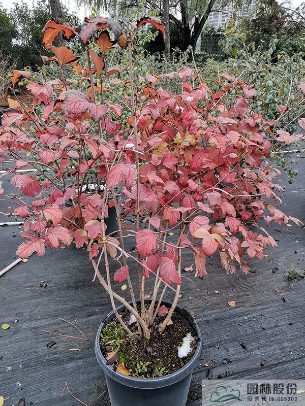 忍冬科莢蒾屬,叢生性落葉灌木,高可達4米?;ò咨?,花期4-5月,果大而紅,觀果期長,可從7月持續(xù)到10月。葉掌狀,通常三裂,秋季一般9-10月葉色開始轉(zhuǎn)紅,11月達到最佳效果。歐洲莢蒾是莢蒾屬中秋色葉效果較好的一個種類,紅葉期來得比較早,且葉色最為鮮艷。該種病蟲害少,適應性強,耐寒,北方室外能正常生長。生長速度快,適合工程應用或庭院觀賞。