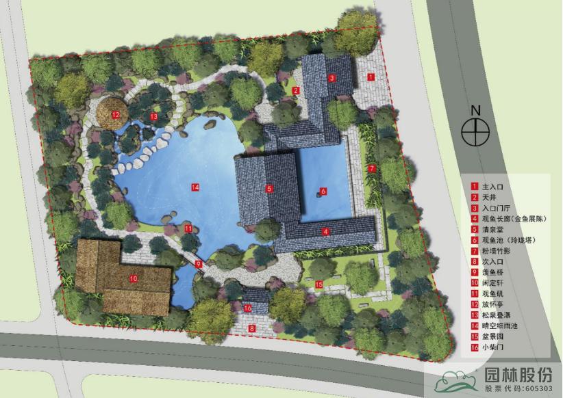 “池里青魚魚躍,池上游人人眷,嬉戲笑逐顏,彼此兩相悅,快樂在心田?!焙贾輬@在有限的空間內(nèi),通過豐富優(yōu)美的景觀營造,描繪出一幅魚水天人的共樂圖畫。