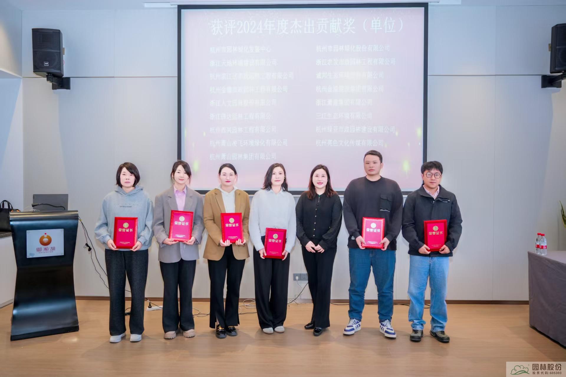 會(huì)上,對(duì)2024年度優(yōu)秀通訊員、優(yōu)秀聯(lián)絡(luò)員、杭州市園林綠化行業(yè)優(yōu)秀媒體、杰出貢獻(xiàn)獎(jiǎng)等進(jìn)行了表彰。其中,鑒于企業(yè)在資源支持、活動(dòng)協(xié)辦、推動(dòng)行業(yè)協(xié)作、社會(huì)責(zé)任履行等方面的貢獻(xiàn)突出,杭州市園林綠化股份有限公司獲評(píng)“2024年度杰出貢獻(xiàn)獎(jiǎng)”。